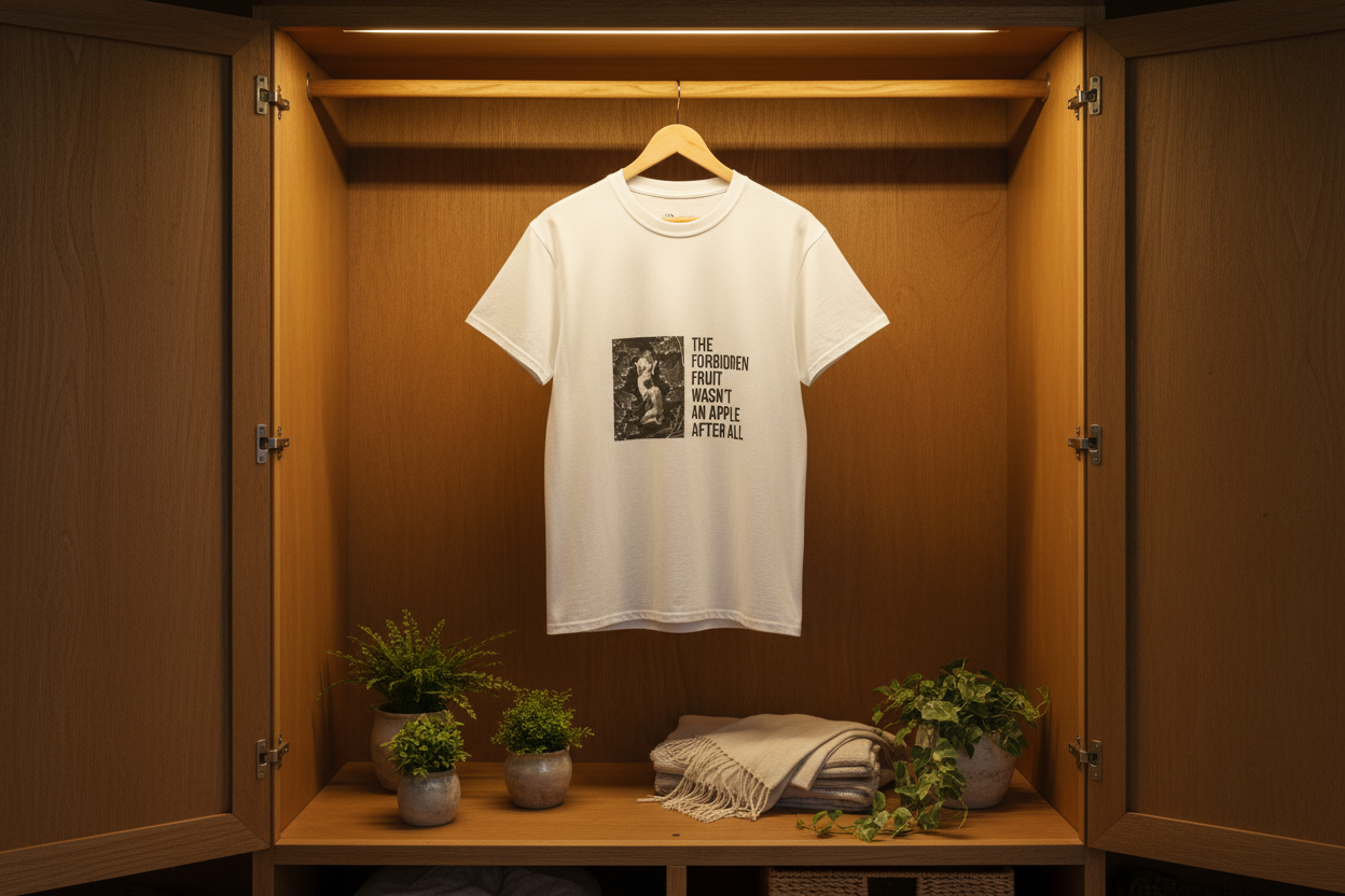 Caption: “The Forbidden Fruit wasn’t an Apple after all”